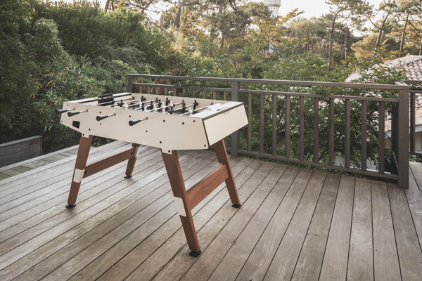 Od laminiranega ohišja do vijakov iz nerjavečega jekla, od eksotičnega lesa do aluminija – vsi materiali so skrbno izbrani in preizkušeni, da zagotavljajo odpornost na zunanje vplive. Tako dobite ročni nogomet, ki ga lahko brez skrbi pustite na prostem.