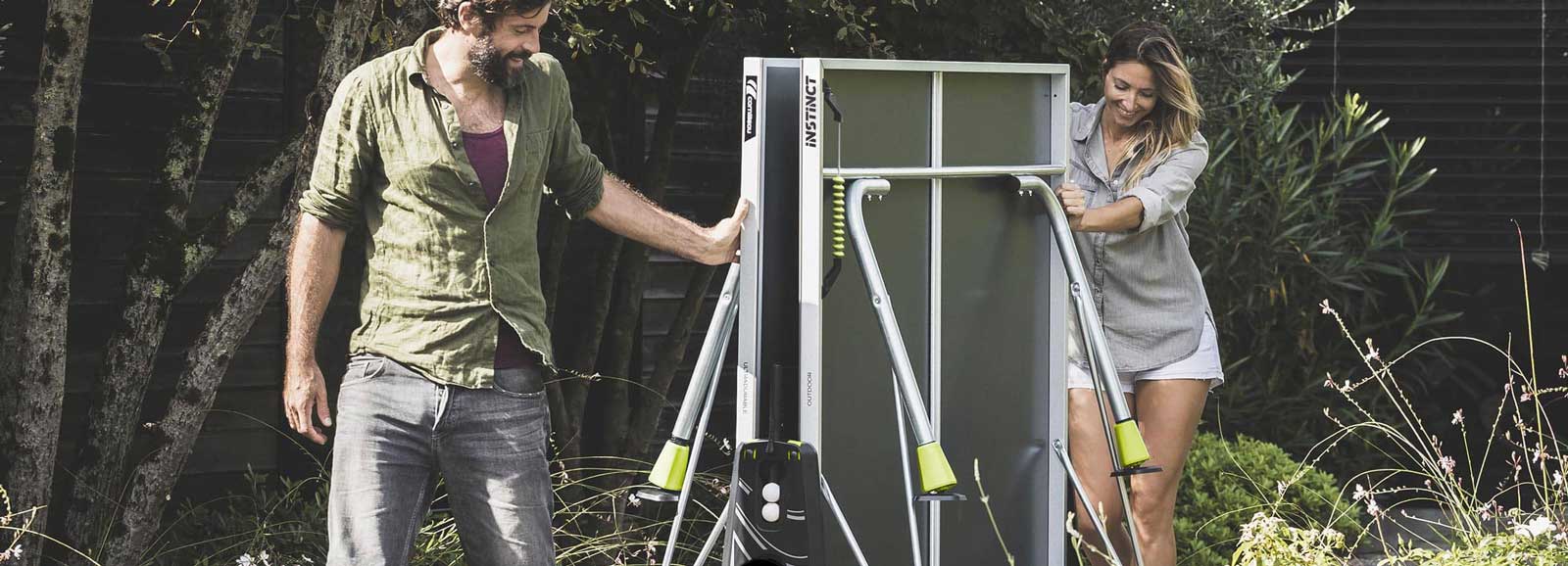 Premaknite svojo mizo, kamor koli želite, in prenesite vašo igro na neraziskano podorčje. Velika dvojna kolesa na mizah Cornilleau ponujajo številne prednosti. Z lahkoto premagajo ovire, gladko potujejo po vseh vrstah terena in so izjemno okretni, enostavni za manevriranje in stabilni v nekaterih zapletenih situacijah, kot je zavijanje okrog tesnega kota, da dosežete idealno mesto za postavitev vaše mize.